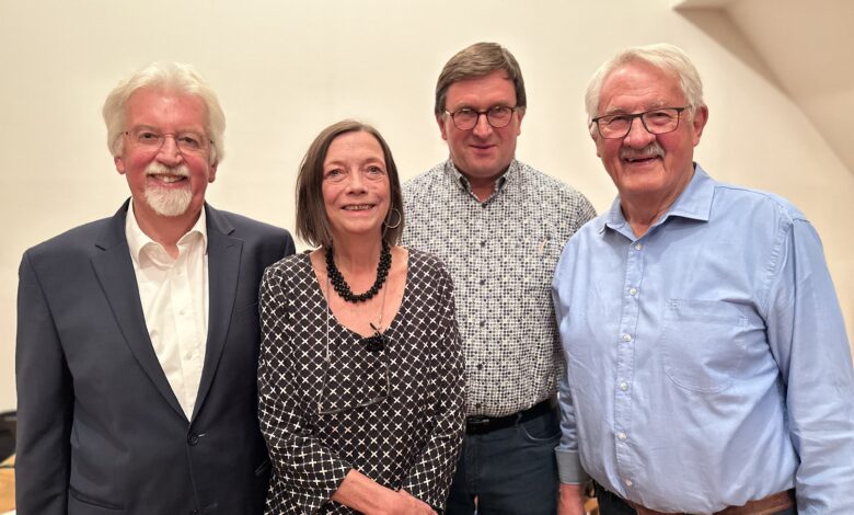 Am 4. September 2024 fand unsere diesjährige Mitgliederversammlung statt. Regine Rottwinkel (zweite von links) und Dr. Bruno Bieker (erster von links) berichteten über die Aktivitäten des vergangenen Jahres. Franz-Joseph Baltes (ganz rechts) berichtete über Einnahmen und Ausgaben bzw. über den Finanzplan für das nächste Jahr. Dieser wurde einstimmig genehmigt. Zweiter von rechts im Bild ist das Vorstandsmitglied Georg Reissaus. Nach der Versammlung trafen sich die Mitglieder und der Vorstand in der Gaststube des Heimathauses. Da es das 2ßjährige Jubiläum des Vereines war, gab es was zu feiern. Nicht nur Getränke und ein Buffet wurden geboten, sondern Heinrich Ludwig Stachelscheid las (unter großem Applaus) ein selbstgeschriebenes Gedicht vor, dass Drolshagen Marketing e. V. zu Thema hatte. (Gedicht siehe unten).