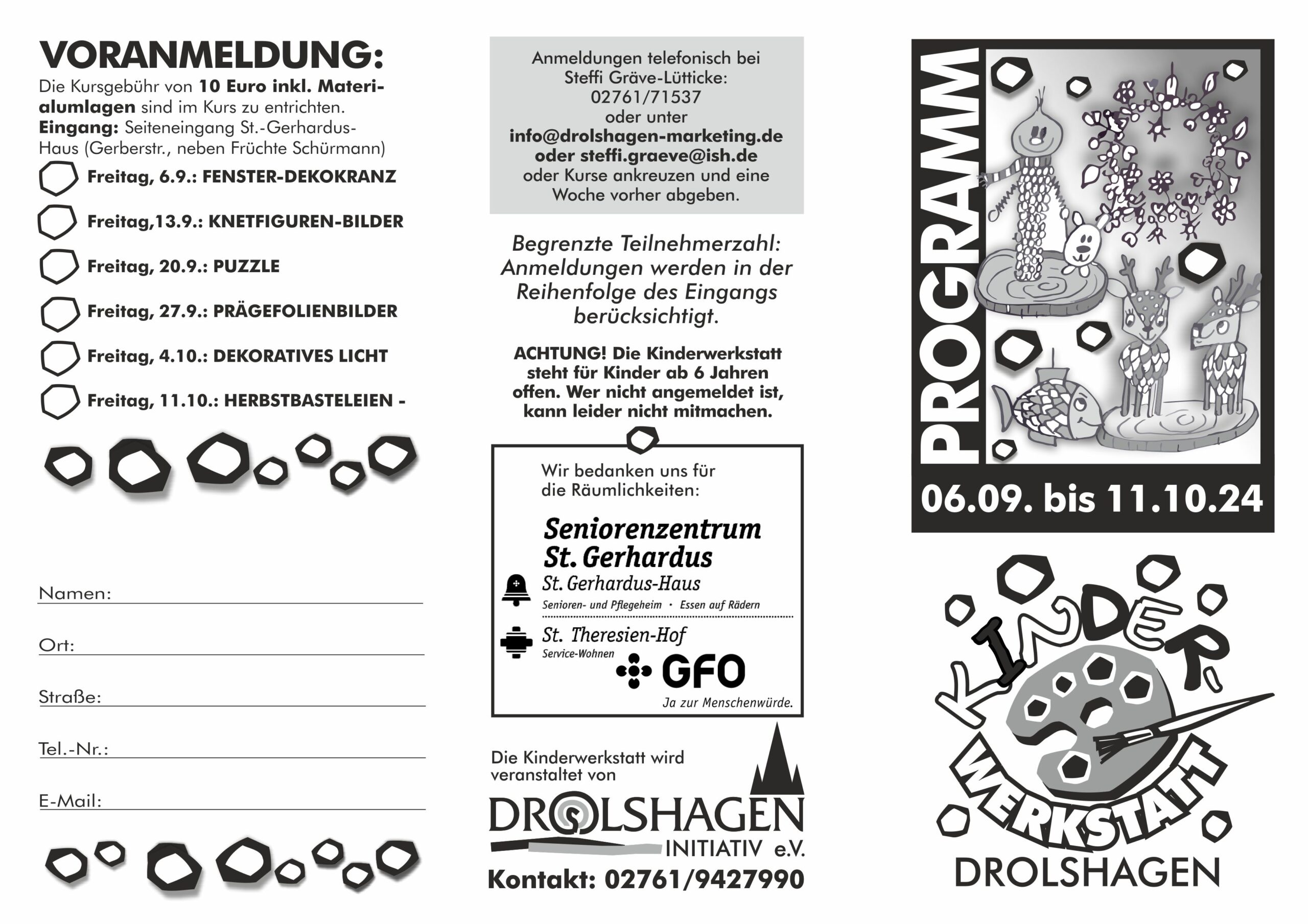 Fragen und Information unter: kinderwerkstatt@drolshagen-marketing.de