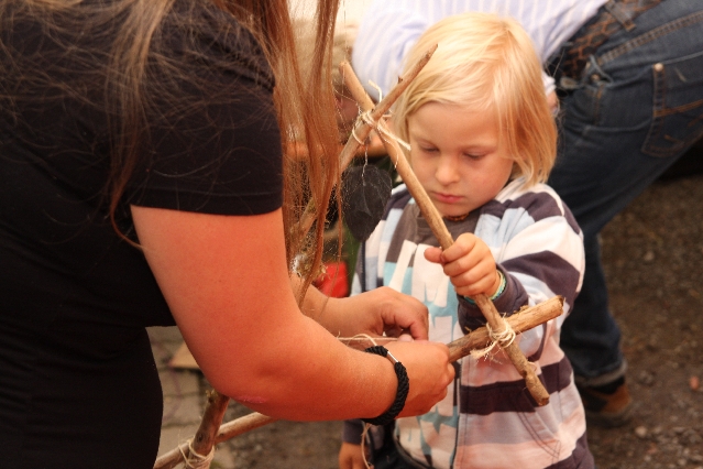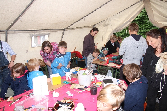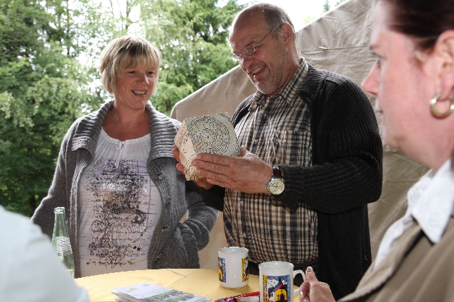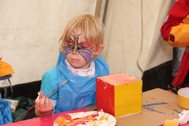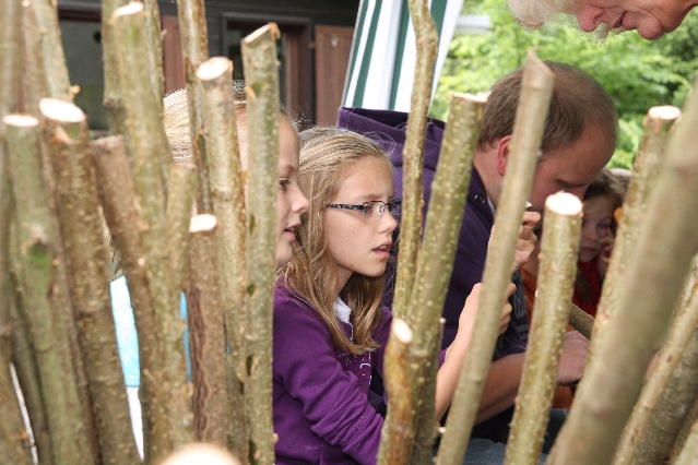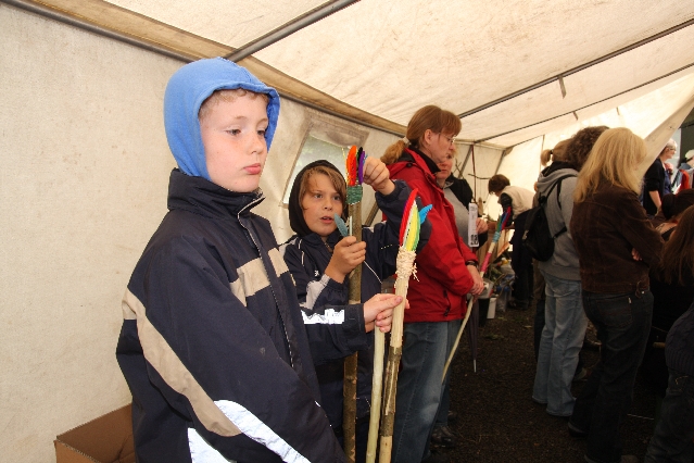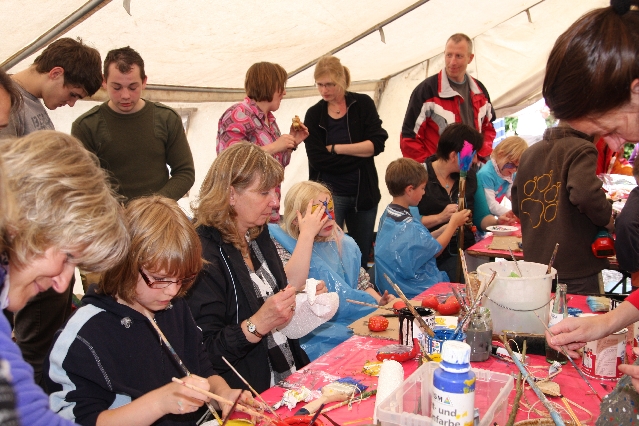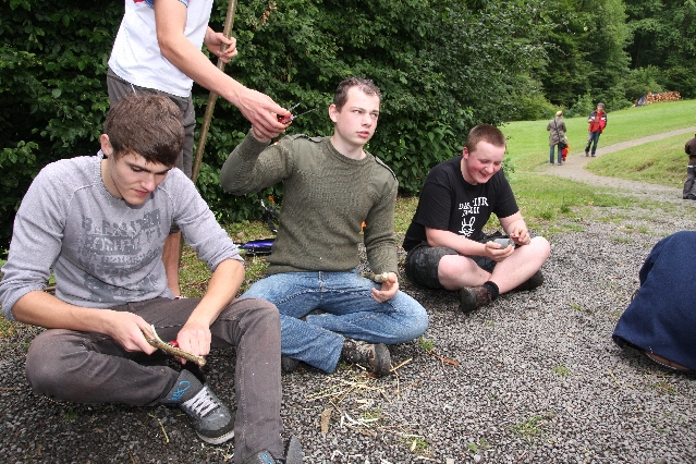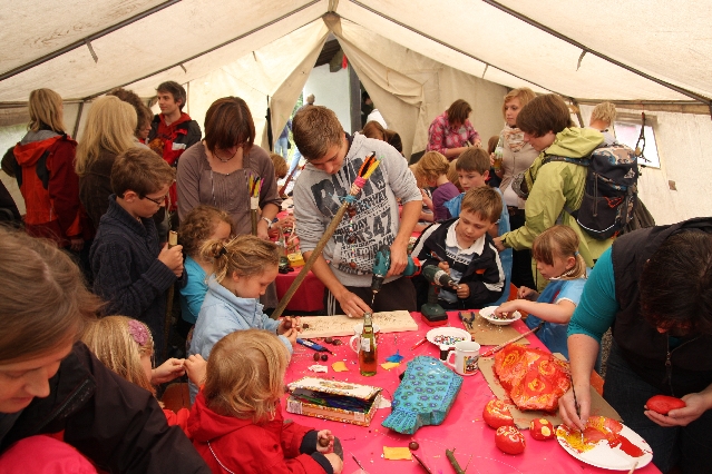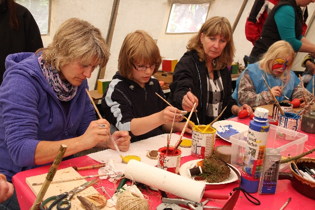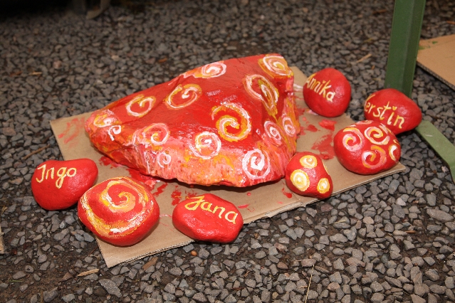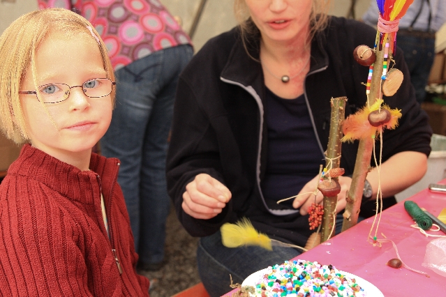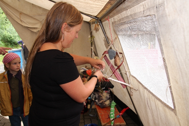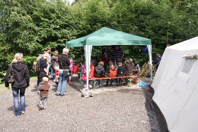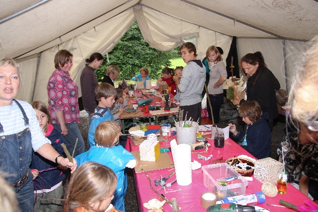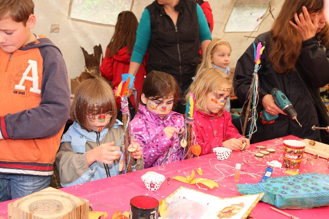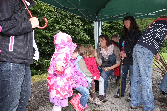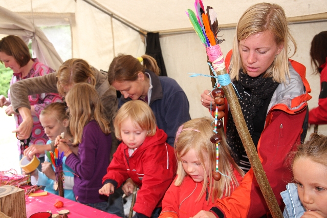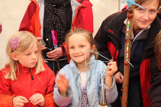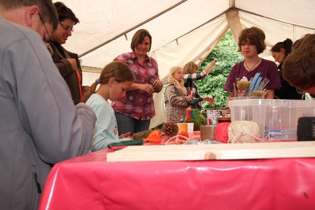 Sorgen haben sie sich gemacht, die Veranstalterinnen des KuLTour-Aktiv-Tages in Drolshagen Kalberschnacke am Listersee. Es sollte regnen, und das ist nun wirklich keine gute Voraussetzung für ein Open-Air-Event. Aber es ist ja gut gegangen, sogar sehr gut. Viele Besucher, Erwachsene und Kinder, hatten viel Spaß bei den Workshops, die am letzten Donnerstag am wunderschönen Kunst-Wanderweg am Listersee angeboten wurden. Da wurde geschnitzt, gemalt, geklebt und gestaltet. Zwischendurch mal schnell eine Stärkung: Würstchen oder Kuchen… und gleich wieder weitergearbeitet. Wer es lieber ruhiger wollte, ist die 7 km KuLTour-Weg gewandert und konnte dabei an einem Quiz teilnehmen und einen 50 Euro-Gutschein der Aktionsgemeinschaft Drolshagen e.V. gewinnen. Am Ende liefen viele kleine „Indianerkinder“ in „Friedens“-Bemalung und mit Zauberstäben johlend über die Wiesen, und auch die Eltern waren restlos zufrieden.