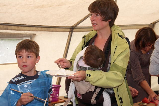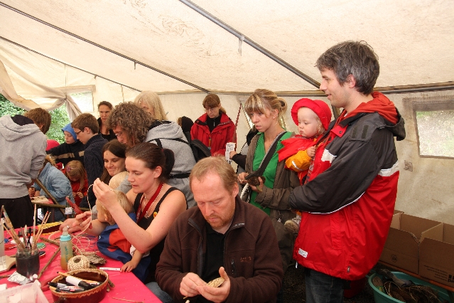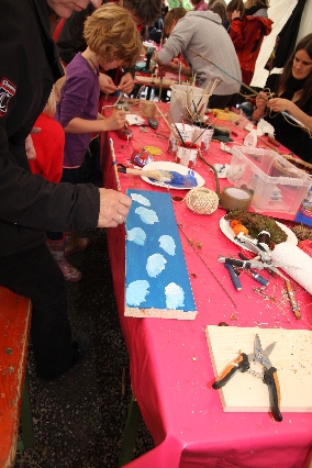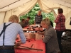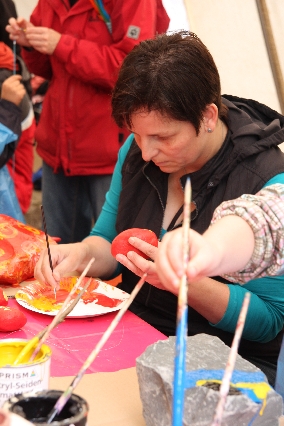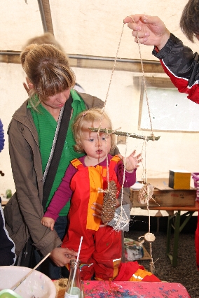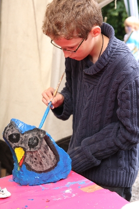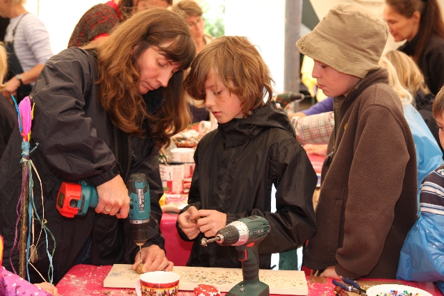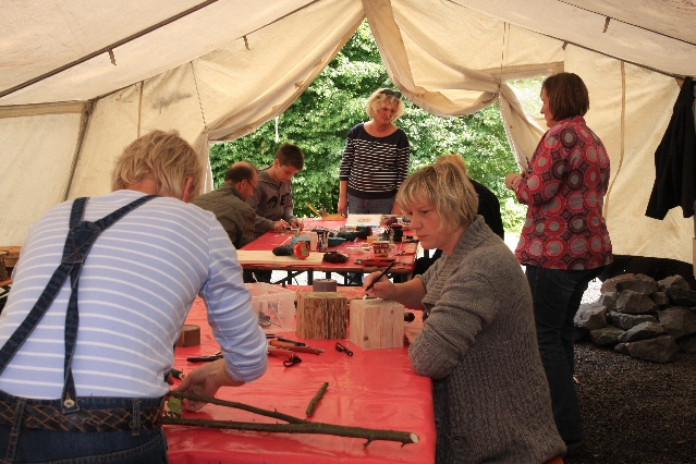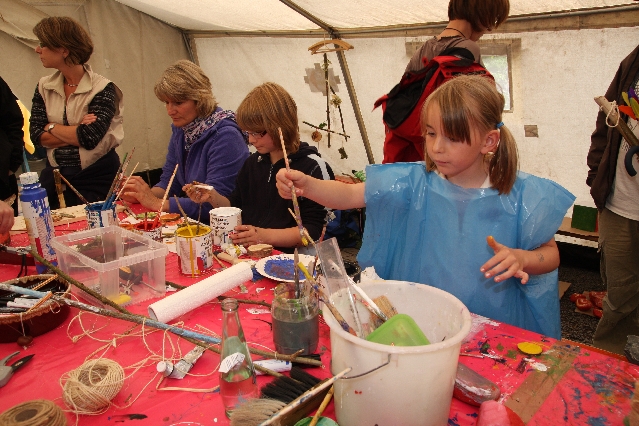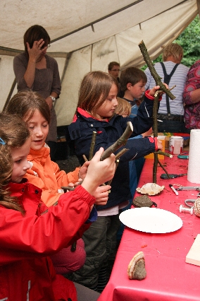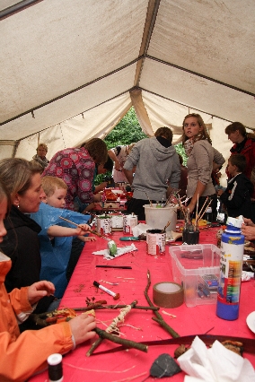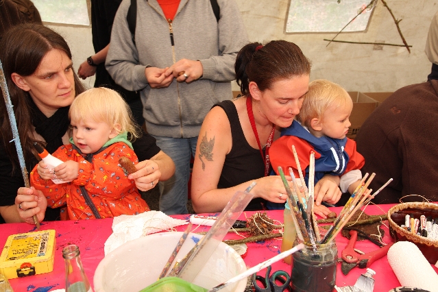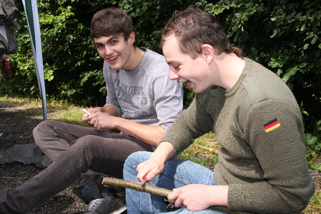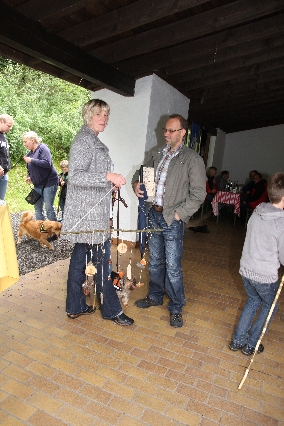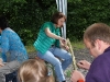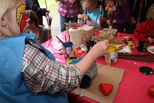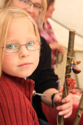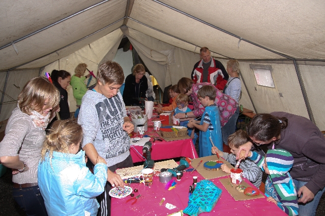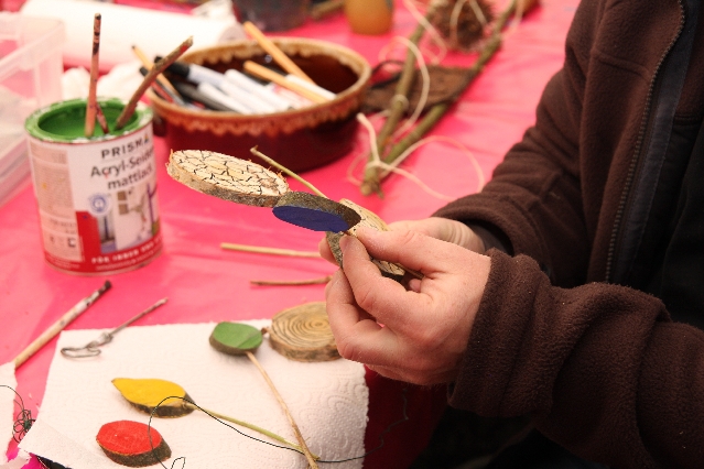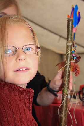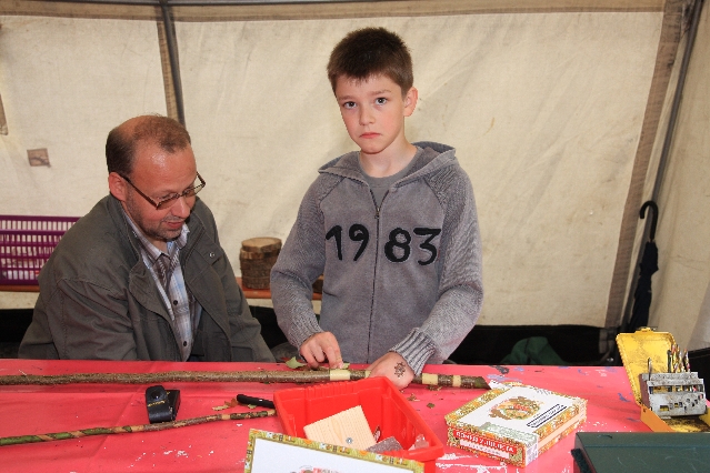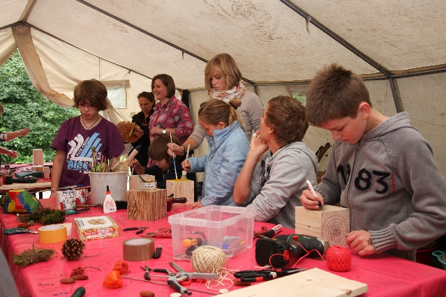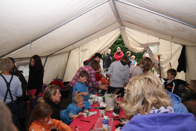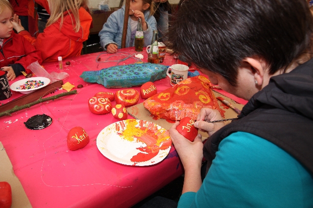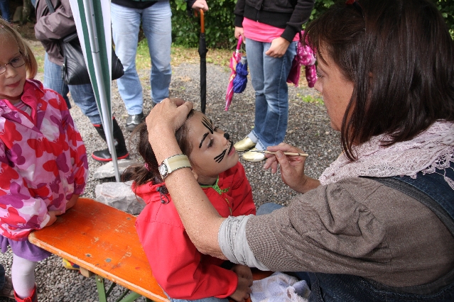 Sorgen haben sie sich gemacht, die Veranstalterinnen des KuLTour-Aktiv-Tages in Drolshagen Kalberschnacke am Listersee. Es sollte regnen, und das ist nun wirklich keine gute Voraussetzung für ein Open-Air-Event. Aber es ist ja gut gegangen, sogar sehr gut. Viele Besucher, Erwachsene und Kinder, hatten viel Spaß bei den Workshops, die am letzten Donnerstag am wunderschönen Kunst-Wanderweg am Listersee angeboten wurden. Da wurde geschnitzt, gemalt, geklebt und gestaltet. Zwischendurch mal schnell eine Stärkung: Würstchen oder Kuchen… und gleich wieder weitergearbeitet. Wer es lieber ruhiger wollte, ist die 7 km KuLTour-Weg gewandert und konnte dabei an einem Quiz teilnehmen und einen 50 Euro-Gutschein der Aktionsgemeinschaft Drolshagen e.V. gewinnen. Am Ende liefen viele kleine „Indianerkinder“ in „Friedens“-Bemalung und mit Zauberstäben johlend über die Wiesen, und auch die Eltern waren restlos zufrieden.