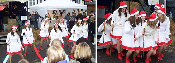 Am Sonntag startet der Weihnachtsmarkt um 11.00 Uhr. Eröffnet wird er um 11.30 Uhr vom Kleinen Bläserensemble Schreibershof. Um 12.30 Uhr freuen wir uns auf die Aufführung des Kindergartens Schreibershof und um 13.20 Uhr liest Anke Strugalla wieder Geschichten für Kinder. Um 14.00 Uhr zeigen die Blechbläser der Musikschule Drolshagen ihr Können und um 15.00 Uhr hat die Tanzgarde Iseringhausen ihren Auftritt. Ihre festlich-schwungvollen Darbietungen sind auf dem Drolshagener Weihnachtsmarkt bereits zur Tradition geworden und bezaubern jedes Jahr das Publikum.