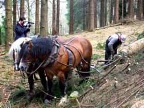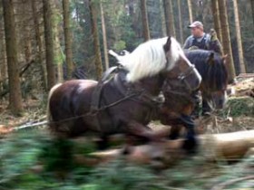 Die Pferde bewegen normalerweise Stämme mit einem Gewicht von bis zu 400 Kilogramm sechs Stunden am Tag. Nach jeweils zwei Stunden gibt es eine Ruhepause. Gutmütig und brav muss ein Rückepferd sein. In geduldigem Training wurden den Tieren die notwendigen Kommandos beigebracht. Besonders wichtig ist dabei, dass das Pferd tatsächlich ruhig stehen bleibt, wenn der Mensch den Stamm ankettet. “Sonst ist meine Hand weg”, beschreibt ein Pferdeführer die Gefahren bei seiner Arbeit. Wer einmal die Möglichkeit erhält, den Pferden beim Rücken zuzusehen, sollte die Gelegenheit beim Schopf packen, denn es ist ein Erlebnis zu beobachten, mit welcher Eleganz und Kraft die Tiere ihre Arbeit erledigen. Einen kurzen, faszinierenden WDR-Film über die Arbeit der Rückepferde in unseren Schlüsen finden Sie in unserem Videoarchiv.