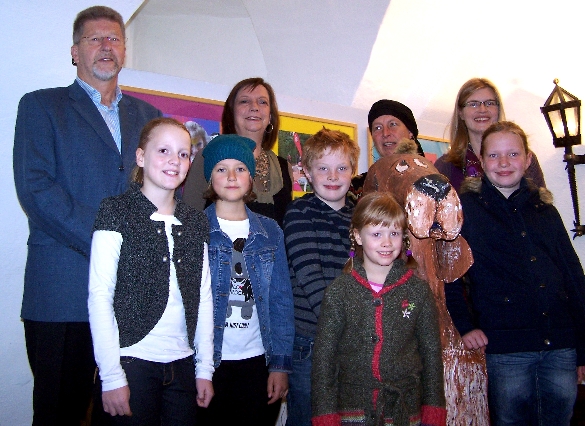 Abb: hinten, Gerd Rüsche, Regine Rottwinkel, Steffi Gräve-Lütticke und Christina Lütkenhaus mit einigen jungen Künstlern