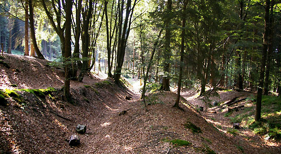 „Schlüsen“ nennt man in Drolshagen die alten Hohlwege, die sich hier überall durch die Wälder ziehen. Unterhalb des Ortes Junkernhöh, unweit von Schützenbruch, hat Drolshagen Marketing e.V. unter Federführung von Dr. Rolf Heinen einen Lehrpfad gestaltet, der ein Gefühl für alte Zeiten und den harten Lebensalltag der Menschen vermitteln soll. Man erfährt, wie das Leben auf und mit den alten Wegen verlief, und was passierte, als sich der Verkehrsstrom durch neue Straßen änderte.
