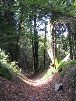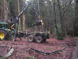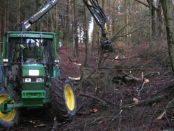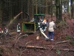 Schon im vergangenen Jahr begannen die Aufräumarbeiten am Bodendenkmal zwischen Junkernhöh und Schützenbruch. Totholz mehrerer Jahrzehnte machten die Schlüsen unpassierbar. Das mußte alles entfernt werden. Über 100 Kubikmeter Häckselgut wurden zum Teil per Hand und zum Teil mit großen Maschinen aus den Schlüsen geschafft. Bäume mußten gefällt werden, große Hindernisse im Wegeverlauf mußten beseitigt werden, um den Lehrpfad überhaupt erst einmal begehbar zu machen.