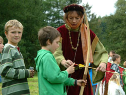 Für die kleineren Besucher war ein „Knappen-Training“ organisiert worden. Es wurden Helme und Hüte gebastelt, und wer mitgemacht hatte, bekam zum Schluß eine „Schlüsenmedaille“.