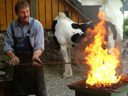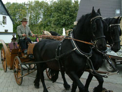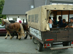 Junkernhöh gehört zum Schlüsen-Lehrpfad einfach dazu. (Nachzulesen auf dieser Homepage unter: Die Schlüsen: Der Lehrpfad) Und so wurden Kutschfahrten nach Junkernhöh organisiert. Entweder in der historischen Kutsche von Herrn Dornseifer oder im Planwagen von Herrn Scholemann. In Junkernhöh angekommen konnte man Herrn Bieker, den Schmied, bestaunen, der vor Ort sein Pferd beschlug. Eine weitere Attraktion war das frische Brot von Herrn Christ.