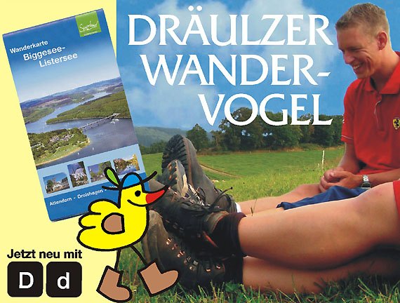 Jetzt gibt es eine Neuauflage vom „Dräulzer Wandervogel“, einer Broschüre, in der alle neuen A-Wege des Naturparks Ebbegebirge und die beiden D-Wege im Drolshagener Land in Wort und Bild kurz beschrieben sind. Die Wanderwege, insgesamt 14, erstrecken sich über das gesamte Stadtgebiet. Als Ergänzung empfehlen wir die neue Karte Bigge-Listersee, erhältlich für 7,95 Euro beim Bürgerbüro Drolshagen oder bei der Buchhandlung am Markt in Drolshagen.
