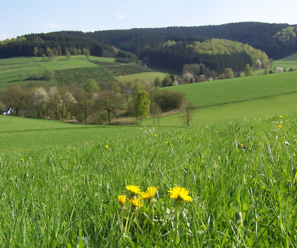 Ein abwechslungsreicher Rundweg, der über bewaldete Hügel und durch besiedelte Wiesentäler führt. Die Tour bietet immer wieder eindrucksvolle Fernblicke. Der kleine Ort Dirkingen, mit ca. 30 Einwohnern, liegt idyllisch eingebettet im Tal der Kurmicke. Das Brachtpetal ist wegen seiner ausgeprägten Wiesenlandschaft eine Augenweide.