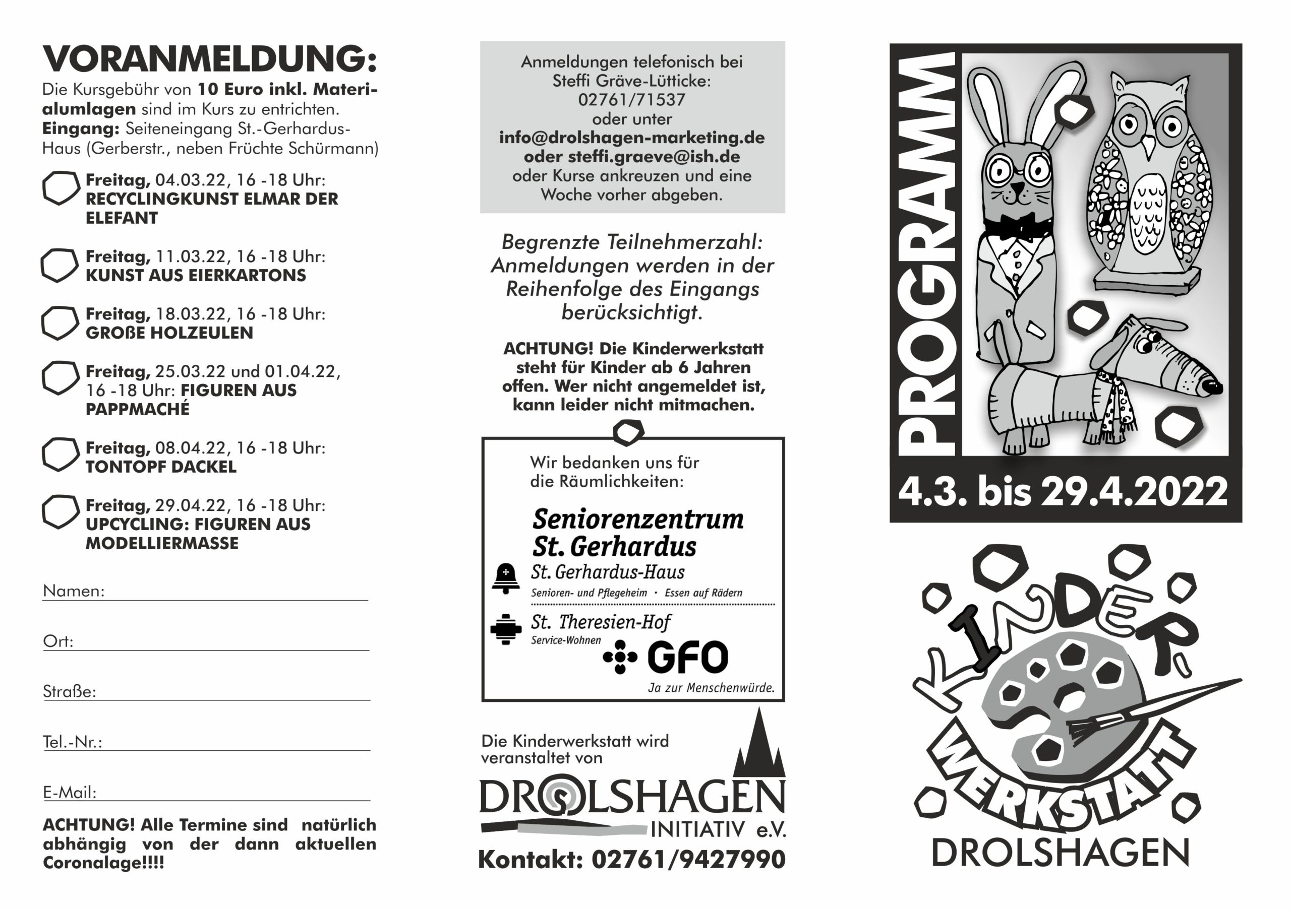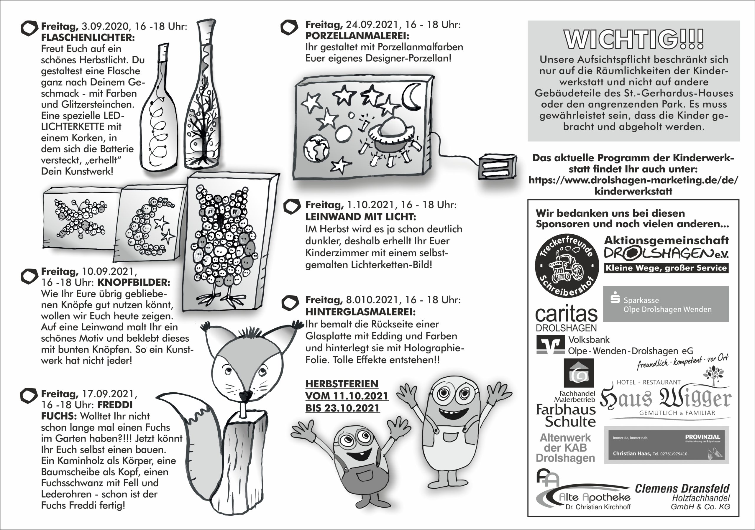 Kinderwerkstatt: Programm 3.09 bis 8.10.2021
