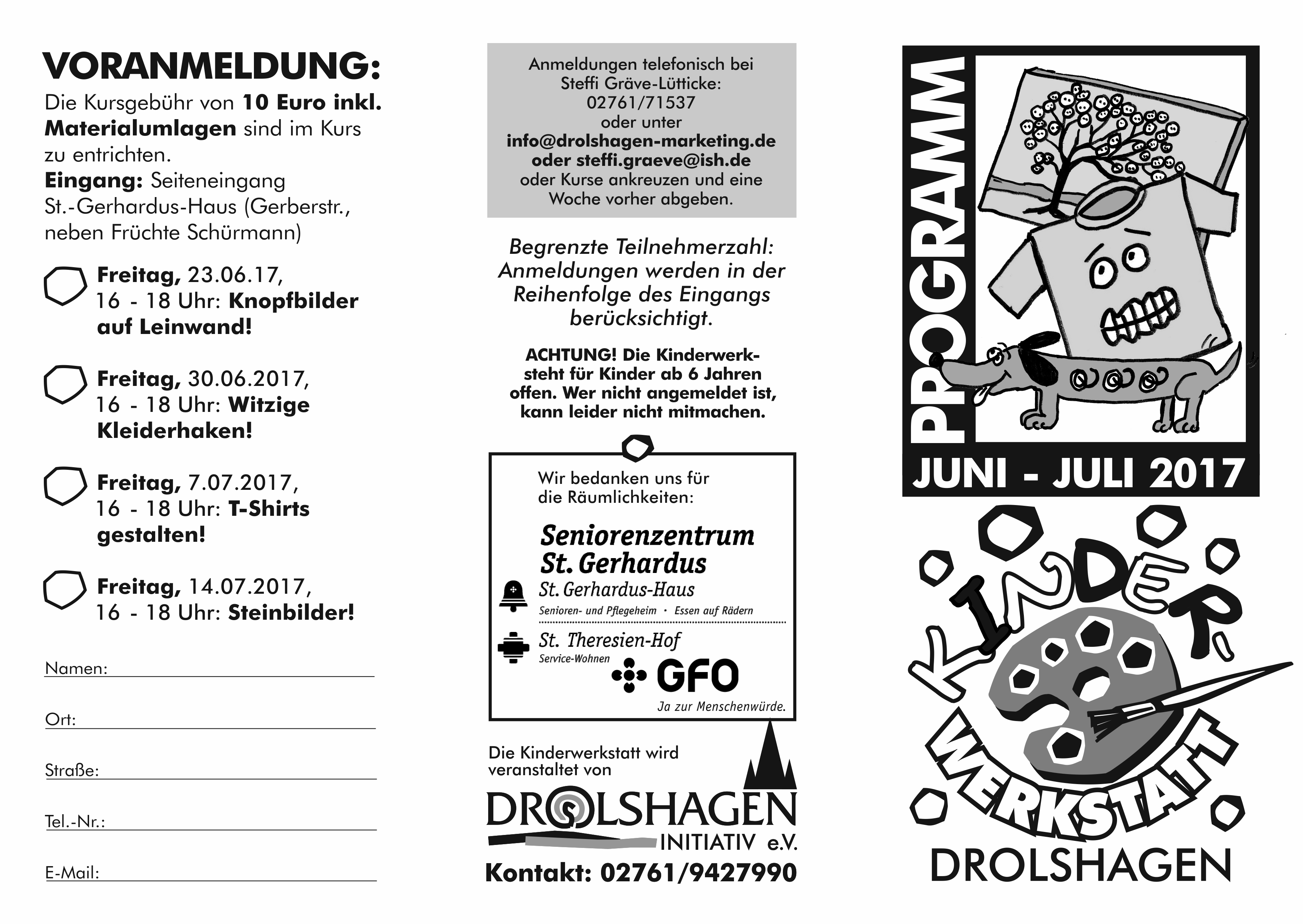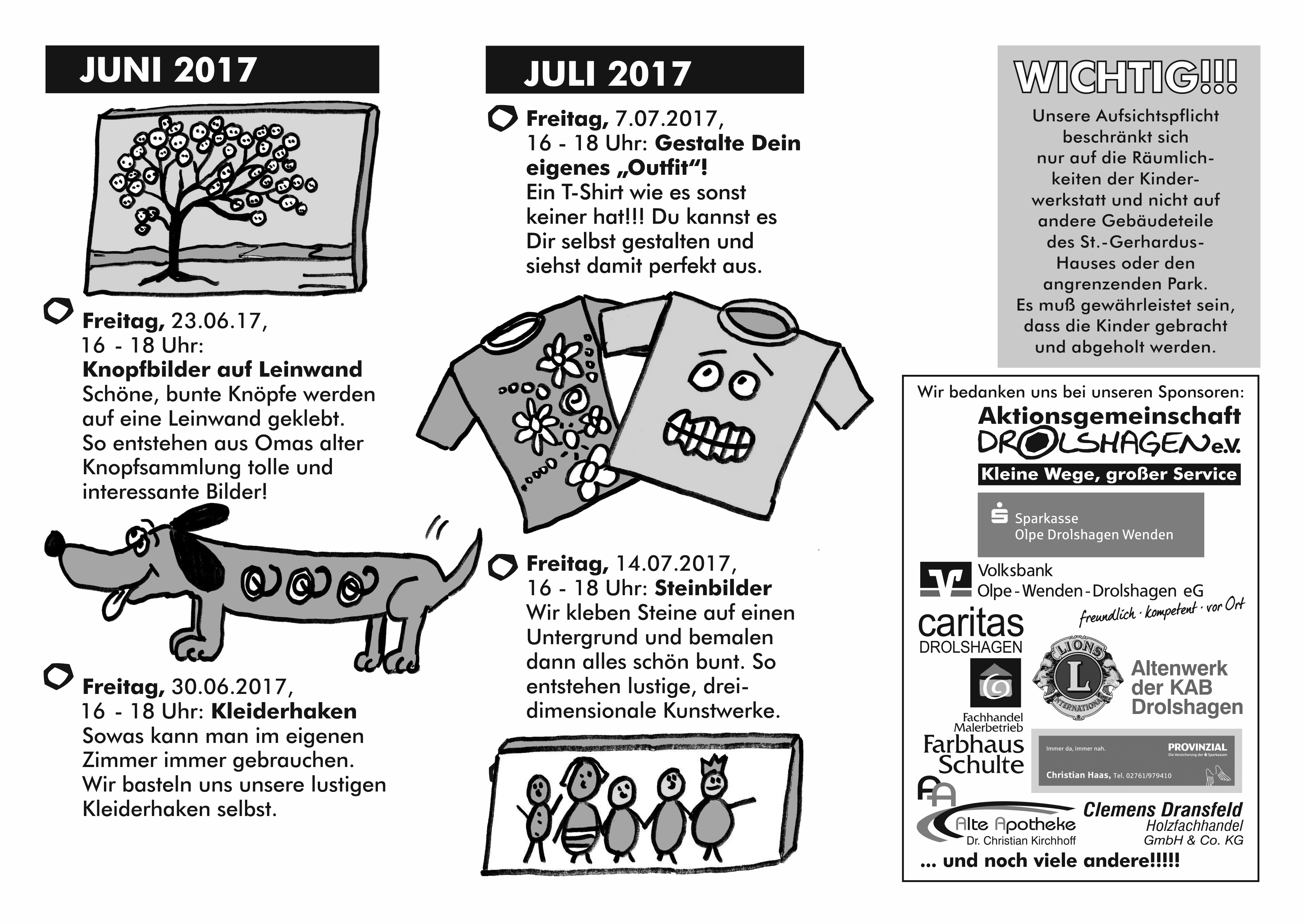 Kinderwerkstatt: Programm Juni – Juli 2017