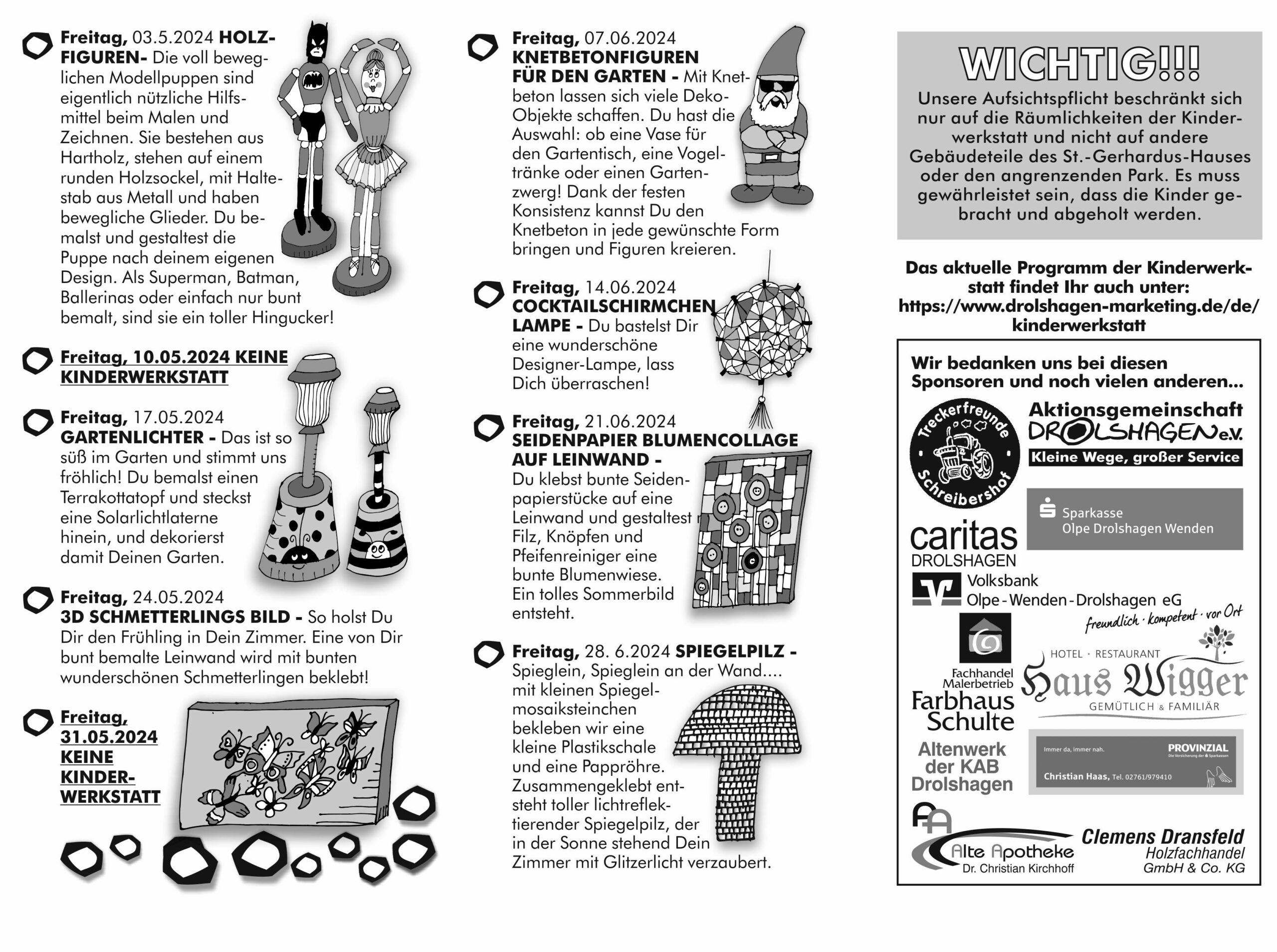 Kinderwerkstatt-Programm vom 03.05.bis 28.06.24