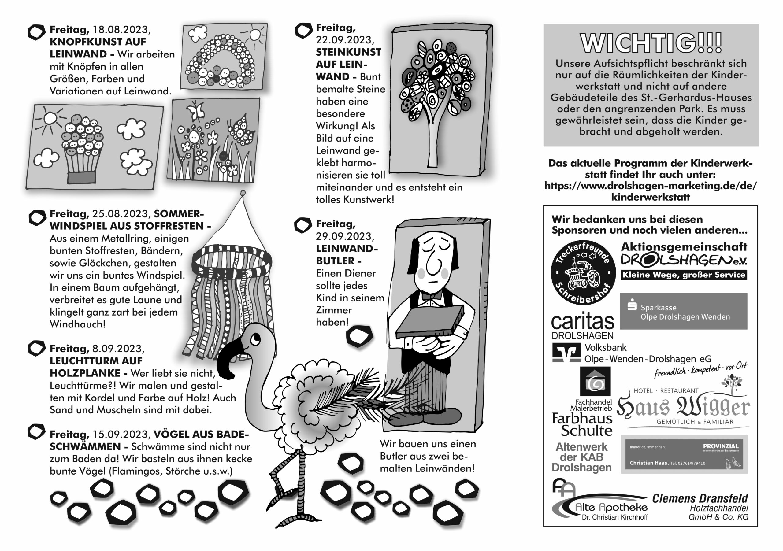 Kinderwerkstatt-Programm vom 18.08. bis 29.09.23