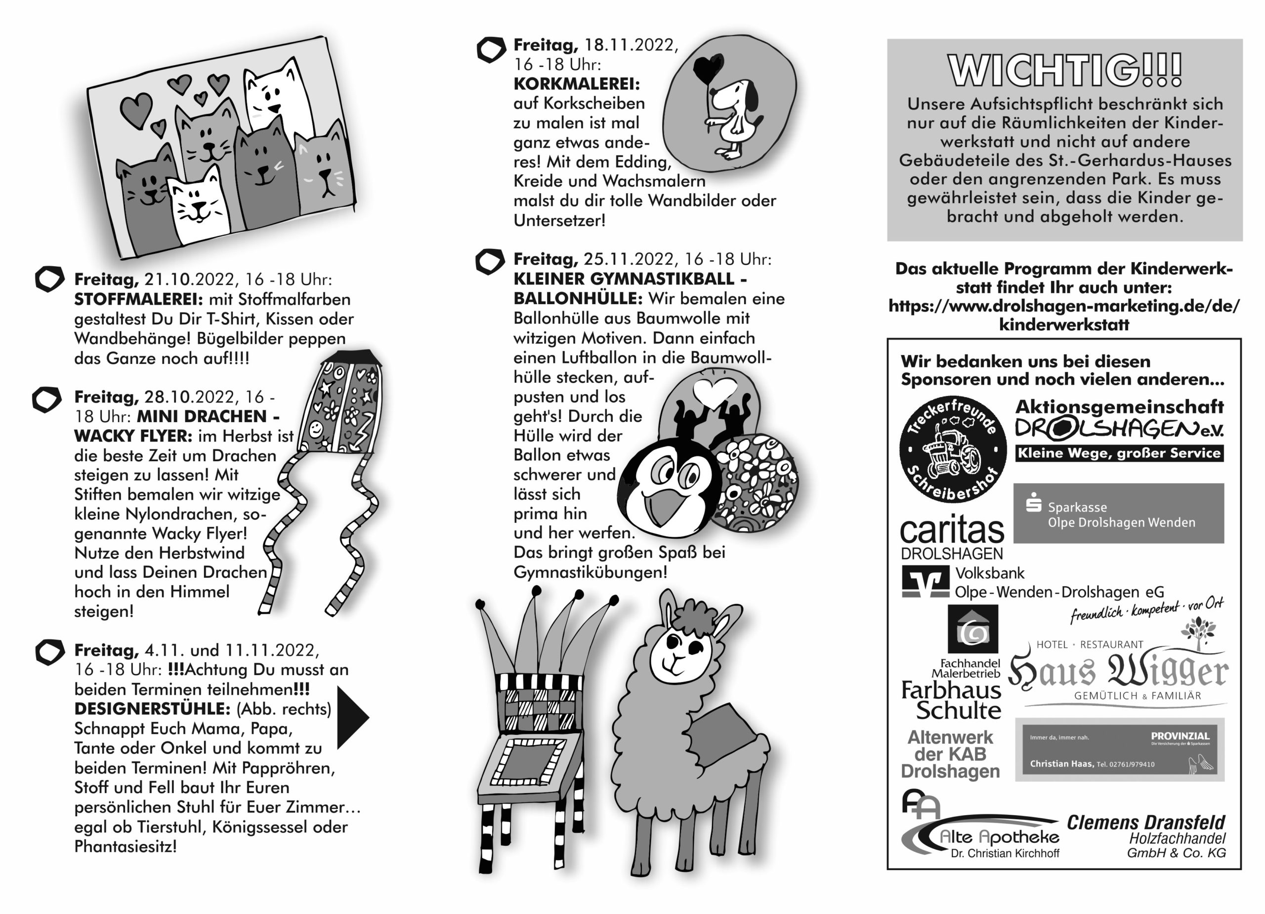 Kinderwerkstatt-Programm vom 21.10. bis 25.11.2022