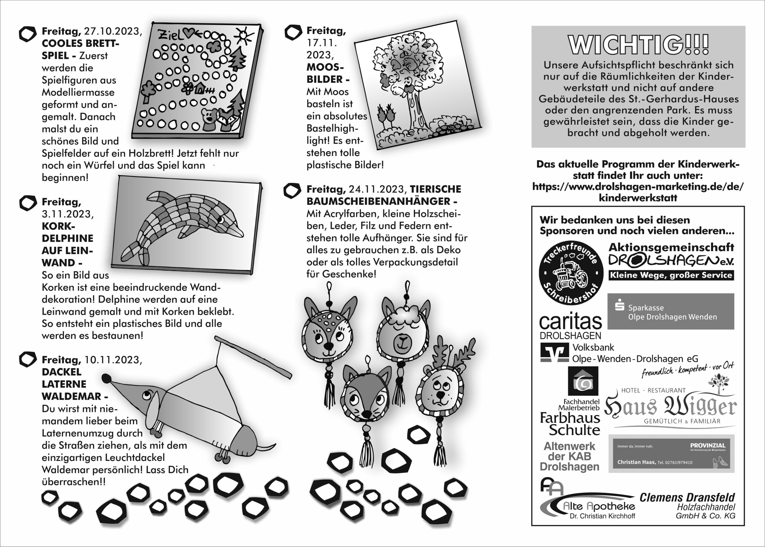 Kinderwerkstatt-Programm vom 27.10. bis 24.11.2023