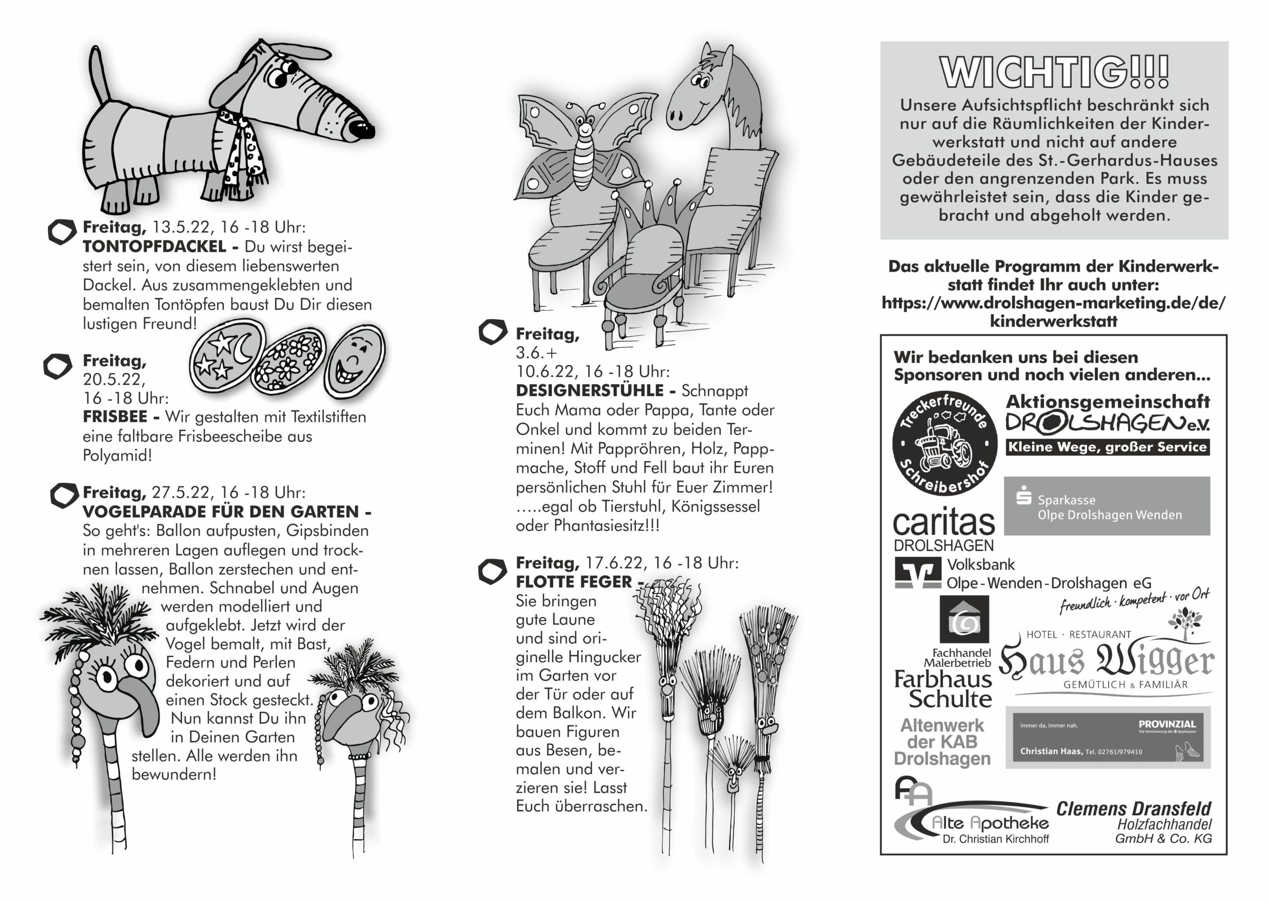 Kinderwerkstatt-Programm vom 13.05. bis zum 17.06.2022