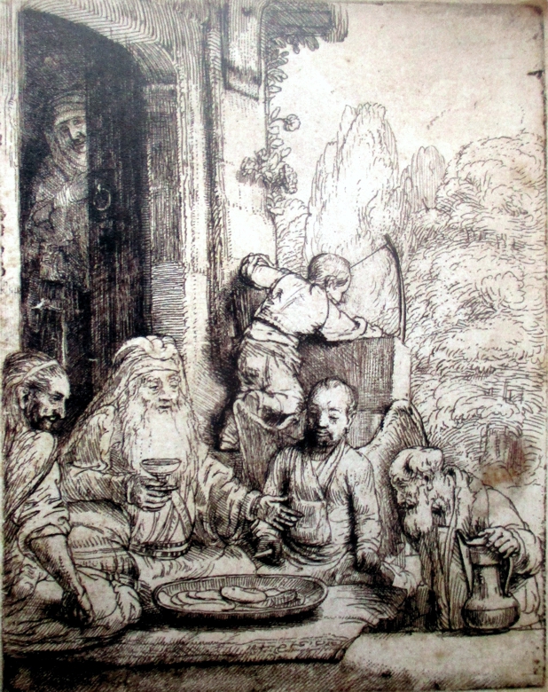 Abb. Rembrandt van Rijn: Abraham bewirtet die drei Engel (Kupferstich 1656)