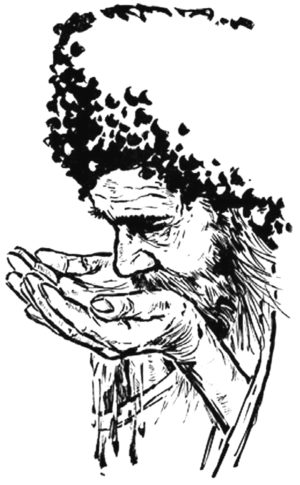 Kaum hatte er dieses Wort gesprochen, als irgendetwas fürchterlich von außen an die Wand schlug, und unversehens sprang die Stubentür auf. Alle Leute wichen verschreckt in eine der Zimmerecken. In der Tür aber steht ein alter Mann, im Lumpen gekleidet. Er zittert und hält sich, um nicht umzufallen, am Türrahmen fest.