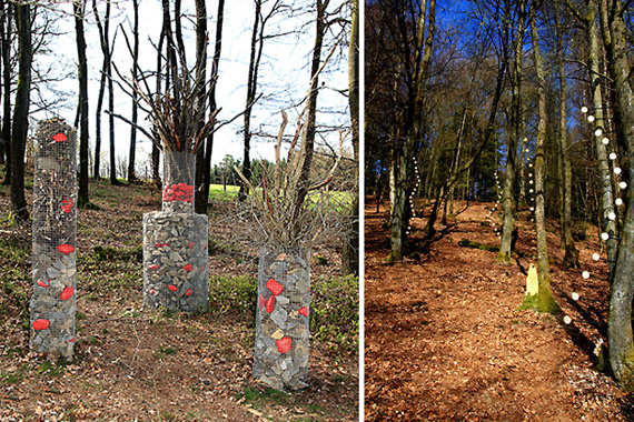2008 und 2009 wurden dann entlang eines ca. 7 km langen Rundweges weitere Objekte realisiert. Das Miteinander von Kunst und Landschaft macht diese ‚KuLTour‘ zu einem spannenden und anregenden Wanderweg. Viele der Kunstwerke sind nicht zu übersehen. Aber bei einigen muss man schon ganz genau hinschauen, um sie in der Natur überhaupt zu entdecken. Das Kreativteam betrachtet das als eine Aufforderung, die Umgebung einmal intensiv und mit suchendem Auge zu betrachten. Die Objekte sind fast ausschließlich mit Naturmaterialien gestaltet.