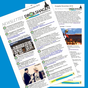 hier ist nun der neue Newsletter mit Infos und Terminen für den Dezember 2017. Der Januar 2018 wird folgen. Wer noch Infos für diesen Monat hat, bitte bis zum 15. Dezember mailen. (Gerne auch mit Bild) Sie können mir auch schon alle Termine, die in für 2018 schon feststehen, mitschicken. Die Termine werde ich natürlich auch in den Onlinekalender von Drolshagen Marketing e. V. übernehmen. (Die Stadt verlinkt auf diesen Kalender.) Gerne werde ich auch Ihre Vereinsvorstellung oder sonstige News einbinden. newsletter12_17klein