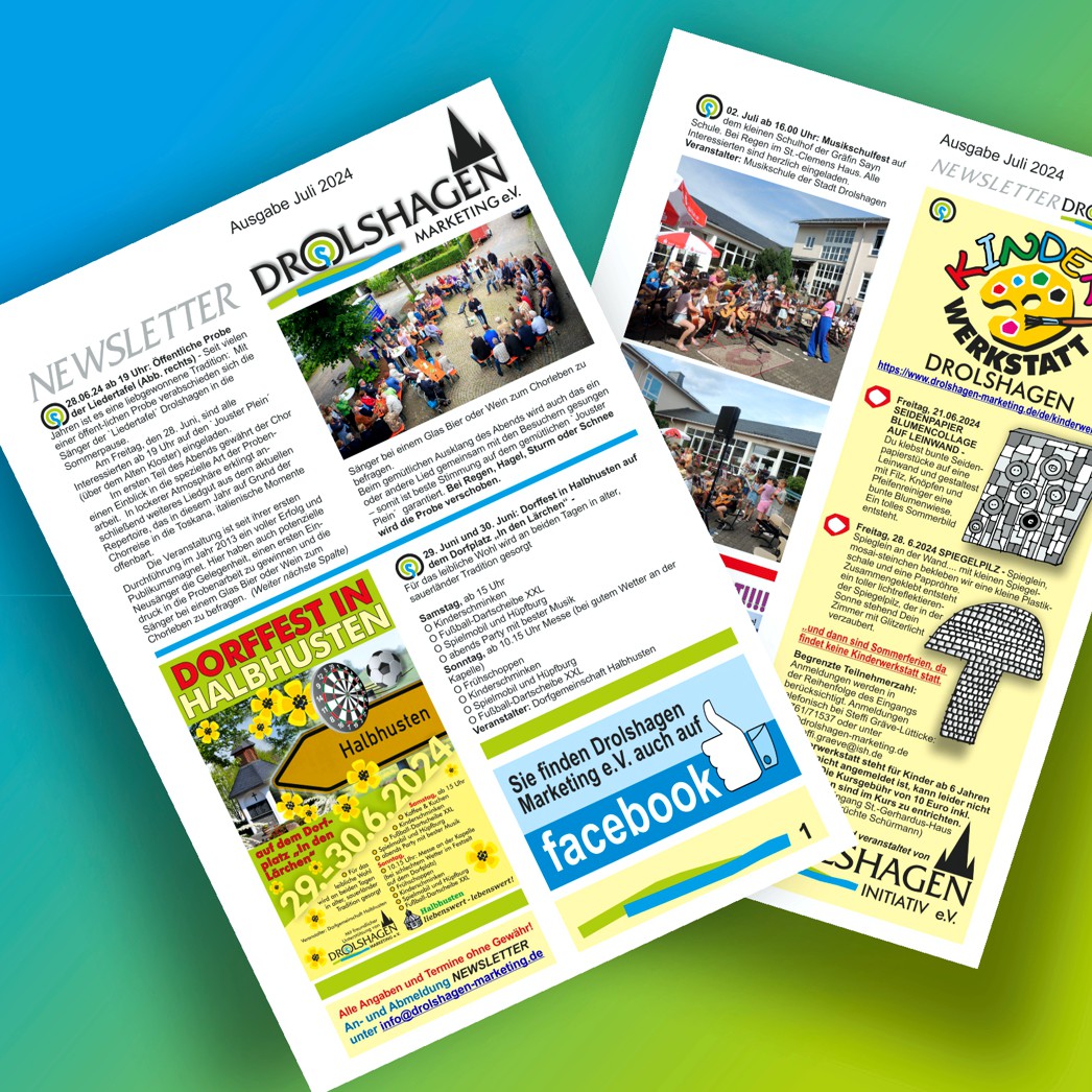 hier ist nun der neue Newsletter mit Infos und Terminen für den Juli 2024. Der August 2024 wird folgen. Wer noch Infos für diesen Monat hat, bitte bis zum 15. Juli mailen. (Gerne auch mit Bild) Sie können auch schon alle weiteren Termine, die für 2024 feststehen, mitschicken. Die Termine werde ich natürlich auch in den Onlinekalender von Drolshagen Marketing e. V. übernehmen. Gerne werde ich auch Ihre Vereinsvorstellung oder sonstige News einbinden.