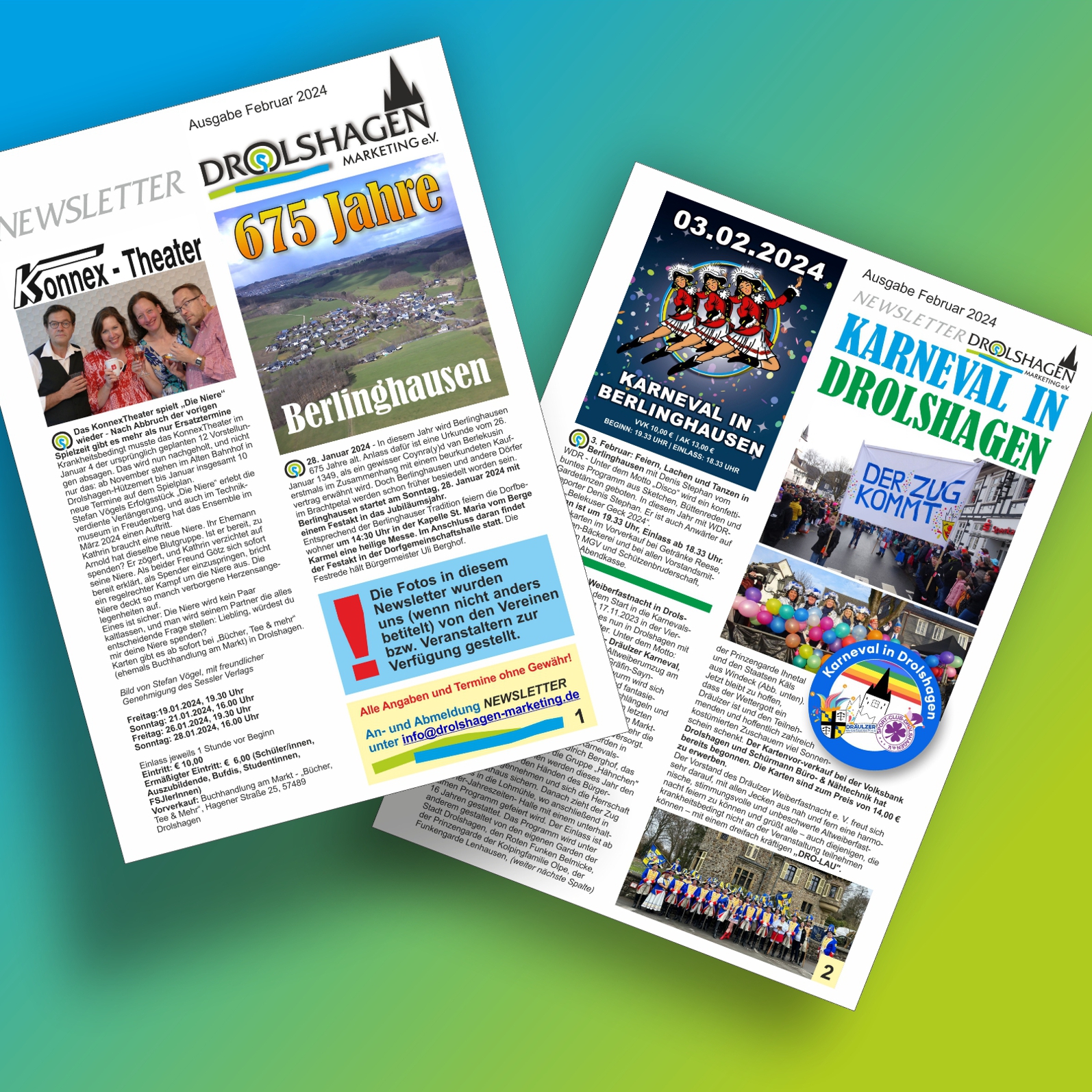 hier ist nun der neue Newsletter mit Infos und Terminen für den März 2019. Der April wird folgen. Wer noch Infos für diesen Monat hat, bitte bis zum 15. März mailen. (Gerne auch mit Bild) Sie können auch schon alle Termine, die für 2019 feststehen, mitschicken. Die Termine werde ich natürlich auch in den Onlinekalender von Drolshagen Marketing e. V. übernehmen. (Die Stadt verlinkt auf diesen Kalender.) Gerne werde ich auch Ihre Vereinsvorstellung oder sonstige News einbinden. Hier der Link zum Newsletter: Maerz_19klein_ok