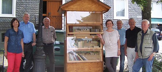 Offener Bücherschrank auf dem Drolshagener Marktplatz