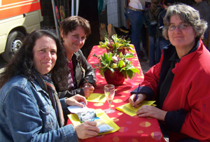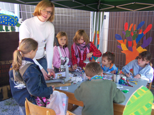Die Drolshagener Kinderwerkstatt war auch mit dabei. Mit den Kindern bastelten Steffi und Christina jede Menge lustiger Buttons. Auch präsentierte die Kinderwerkstatt auf dem Erntefest erstmalig den druckfrischen Familienkalender. Ab Montag ist er in den Filialen von Sondermann-Brot für 5 Euro zu bekommen.