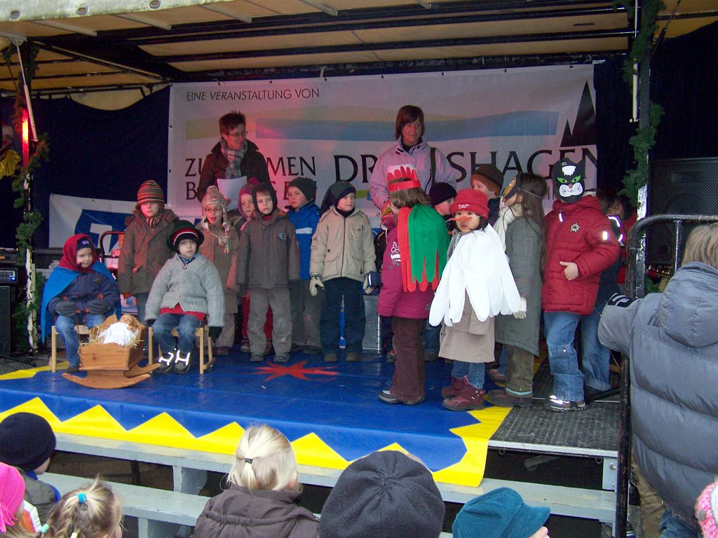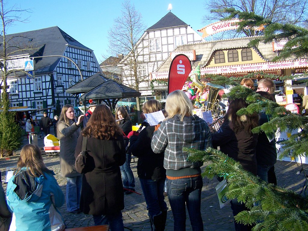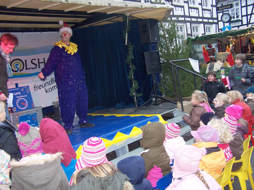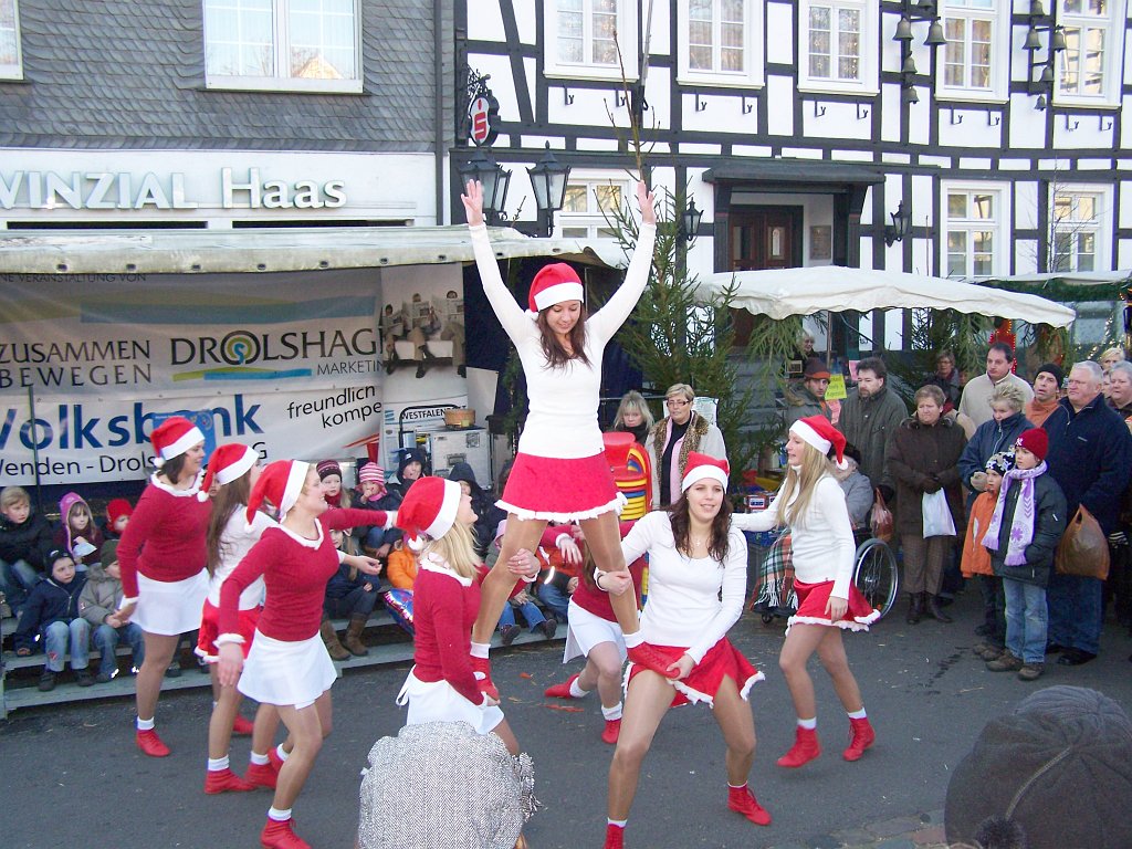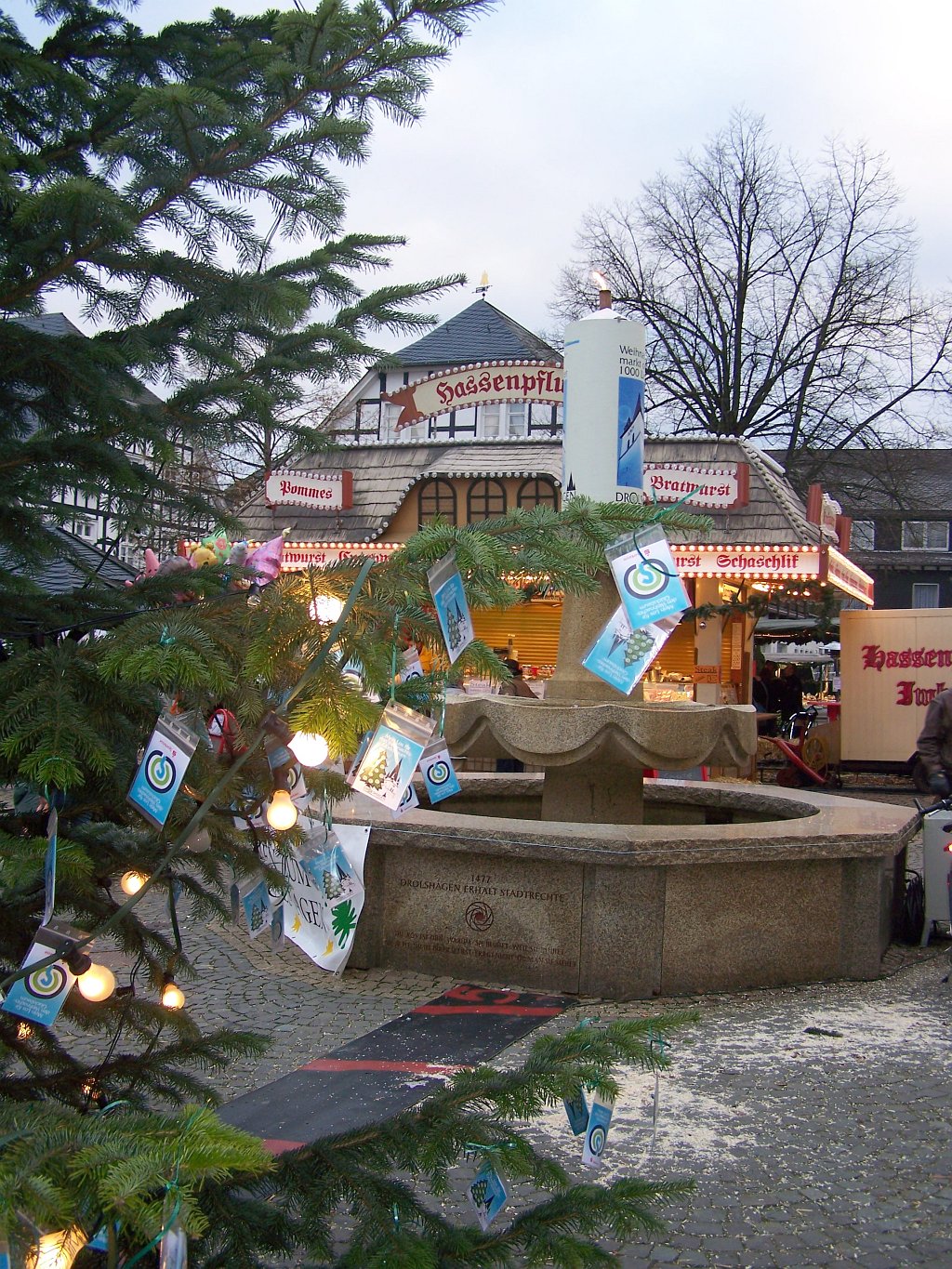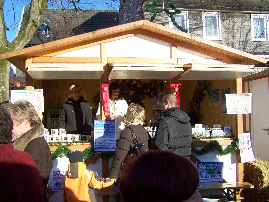 Von alten Fachwerkhäusern umrahmt, bewacht vom gewaltigen Turm der St.Clemens-Basilika, ist der Drolshagener Marktplatz wie geschaffen für einen gemütlichen Weihnachtsbummel. Eine 1,50 m große Kerze wurde auf den Brunnen des Marktplatzes gesetzt und war eine zusätzliche Attraktion. In diesem stilvollen Ambiente fand, wie jedes Jahr am Wochenende des dritten Advents in Drolshagen ein ganz besonderer Weihnachtsmarkt statt.